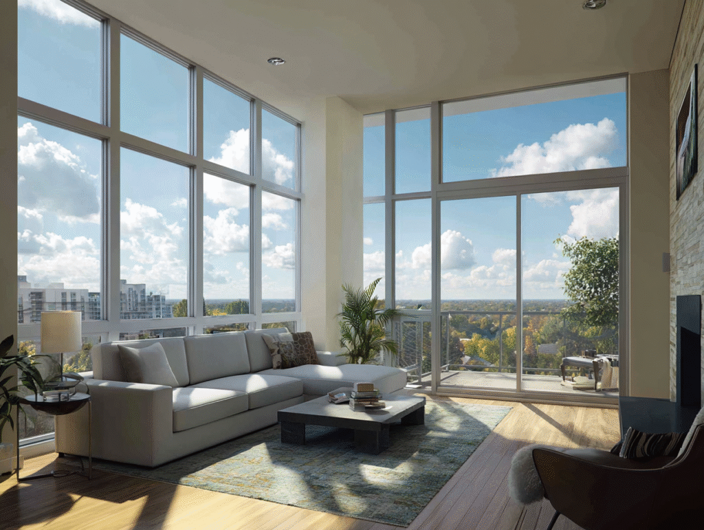 Soundproof windows take it a step further. They’re built on airtight designs but with higher acoustic performance. About 80% of their structure is glass, usually thicker laminated panels (like 5+5 mm) or double-pane designs that use an air layer for extra noise reduction.