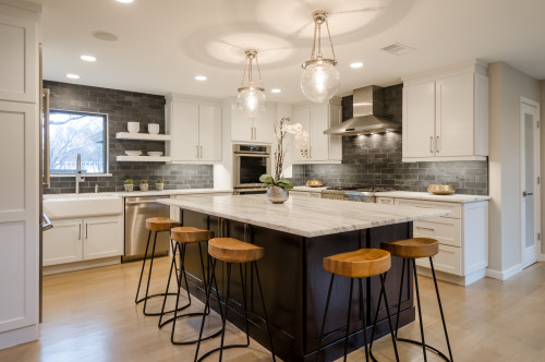 white island and Black Marble Kitchen Backsplash