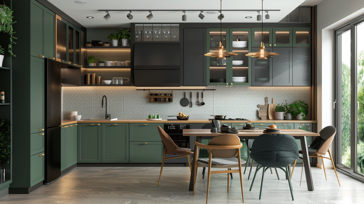 A matte transitional kitchen with the perfect combination of green and black