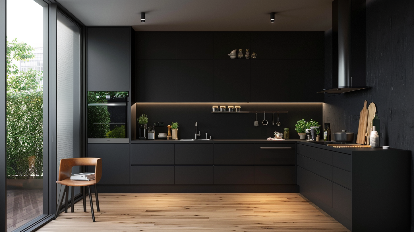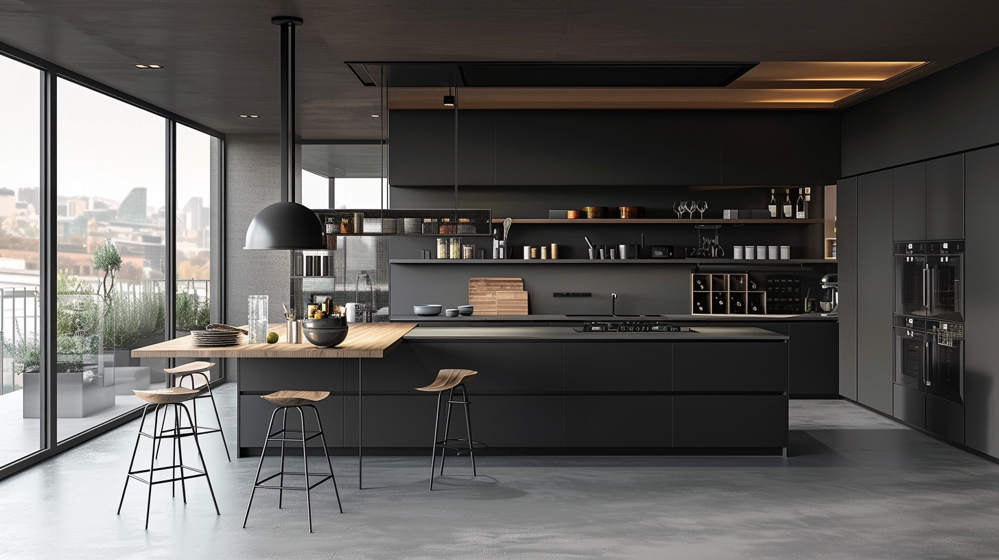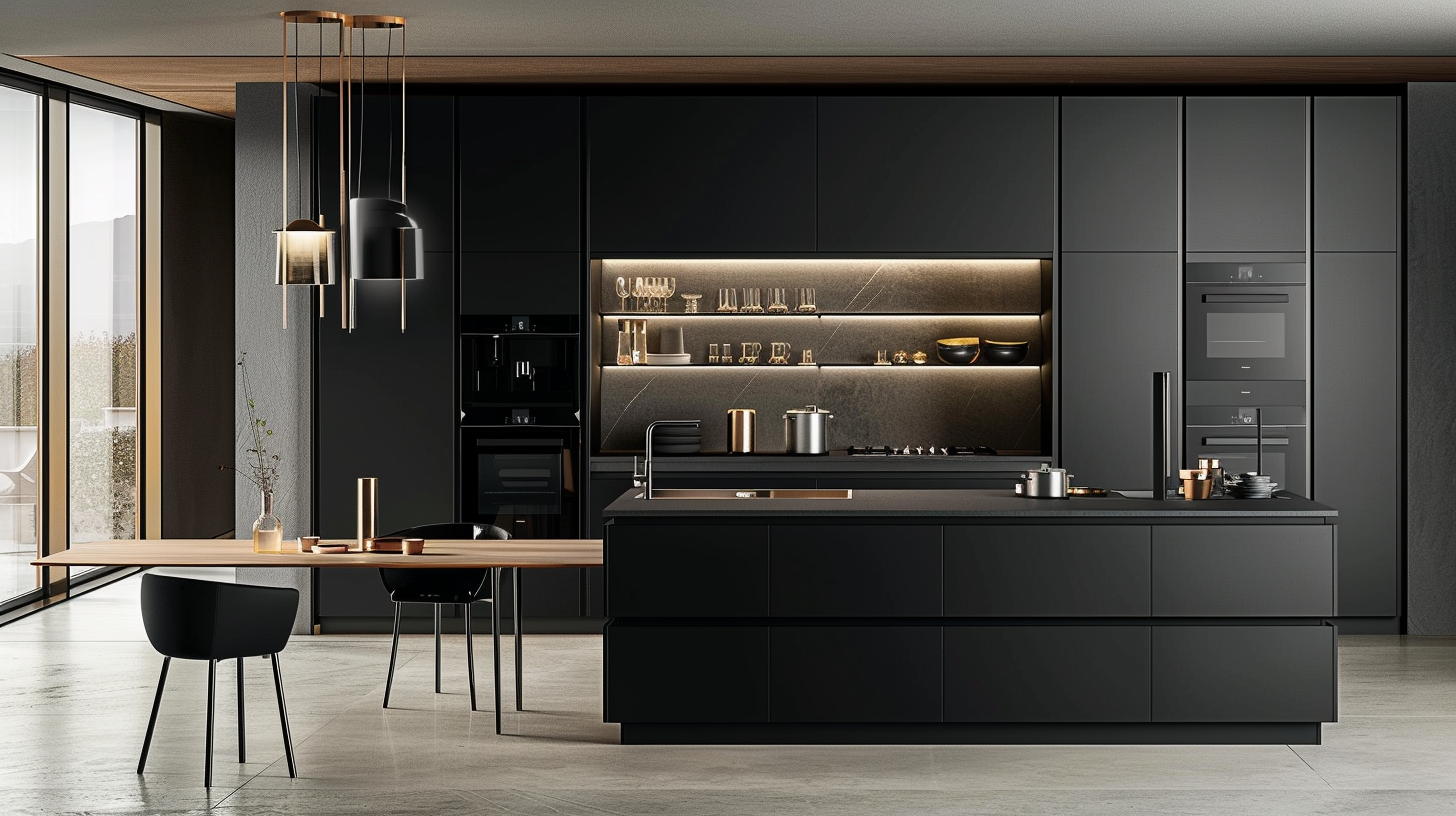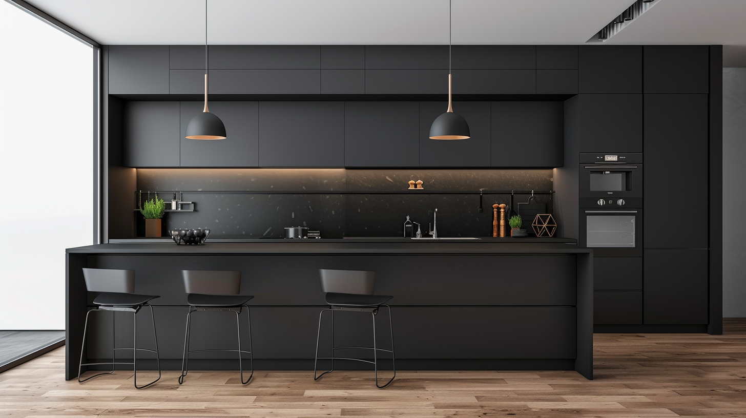 A matte black kitchen that combines practicality and beauty