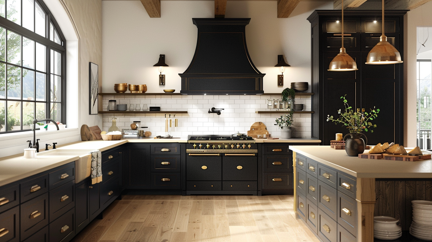 The warm and rustic black matte country kitchen