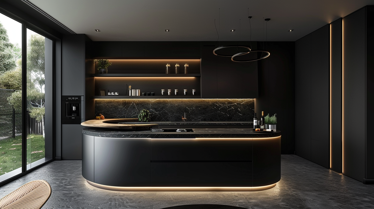 Pure black matte kitchen with LED strip light
